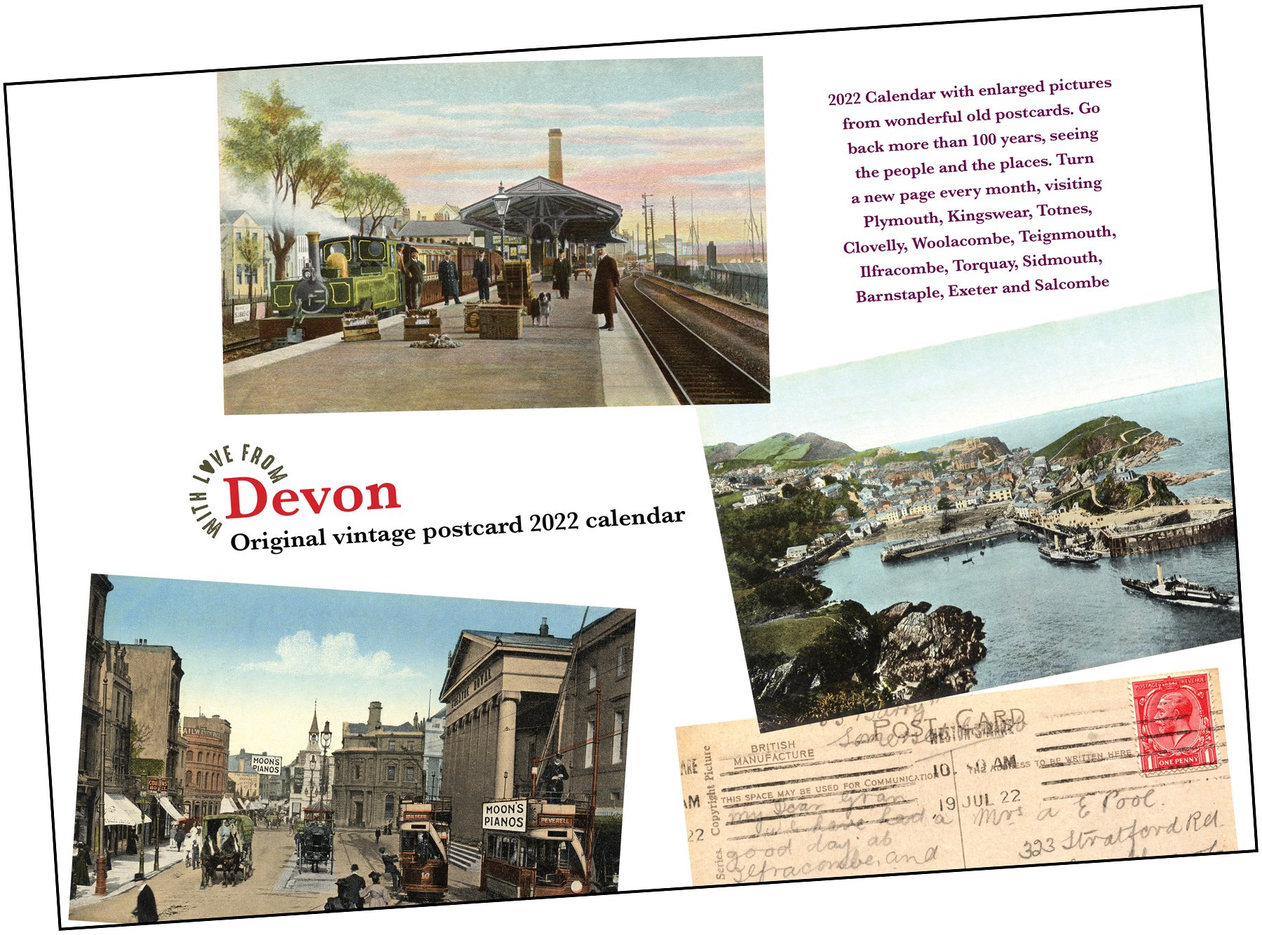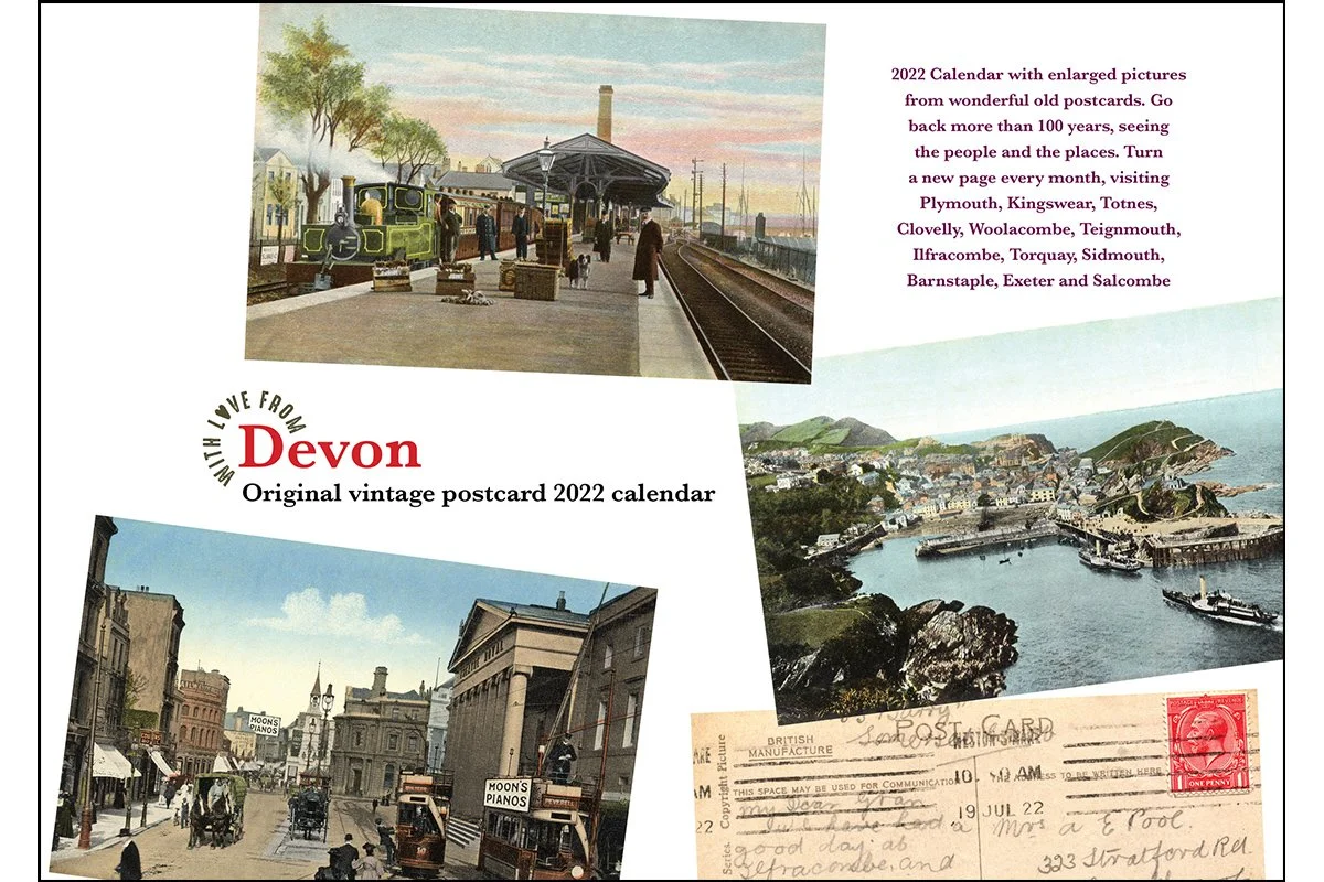 Devon Nostalgia Calendar 2022 includes old postcards of Plymouth, Kingswear, Totnes, Clovelly, Woolacombe, Teignmouth, Ilfracombe, Torquay, Sidmouth, Barnstaple, Exeter and Salcombe. Amazing!